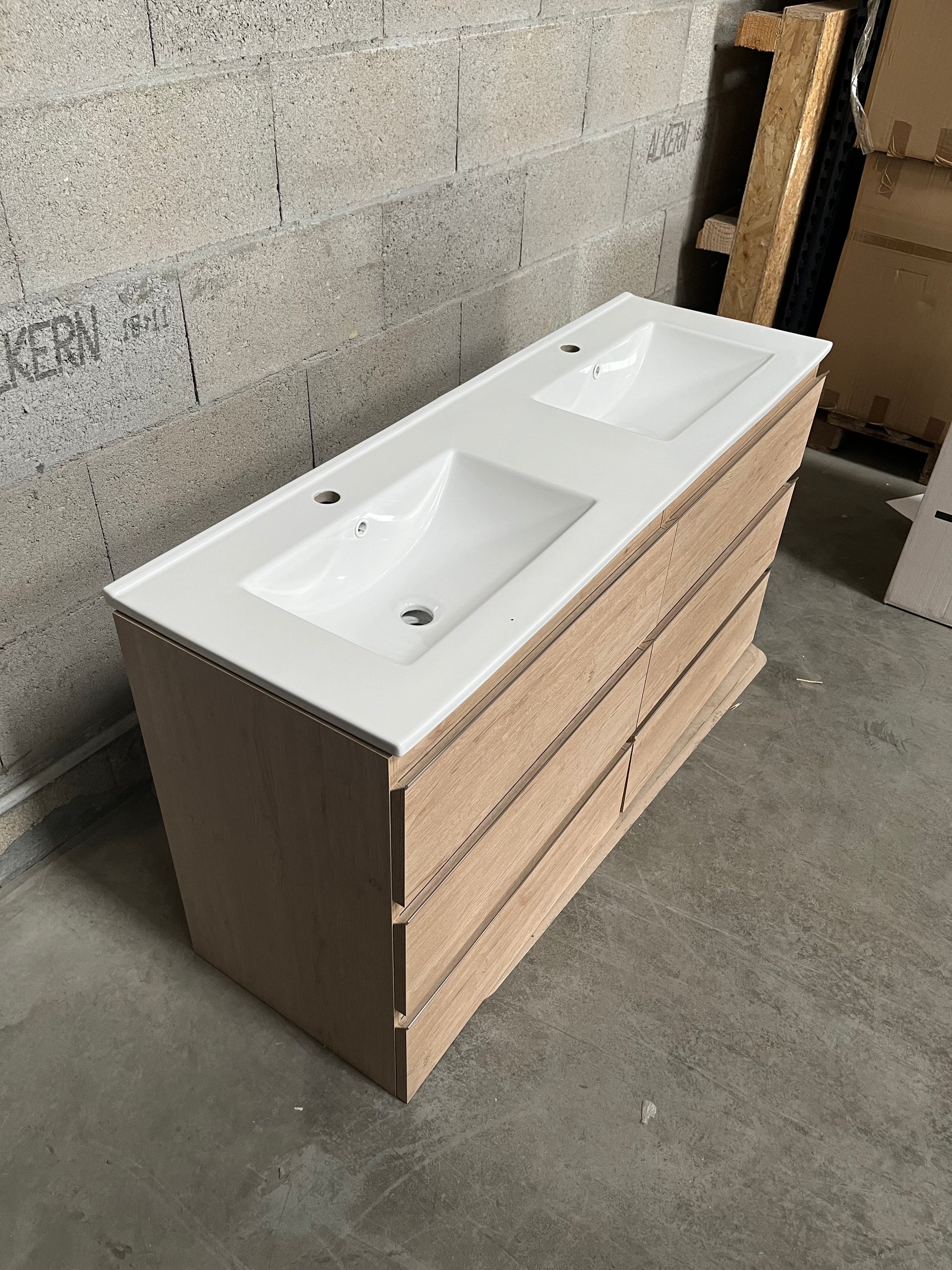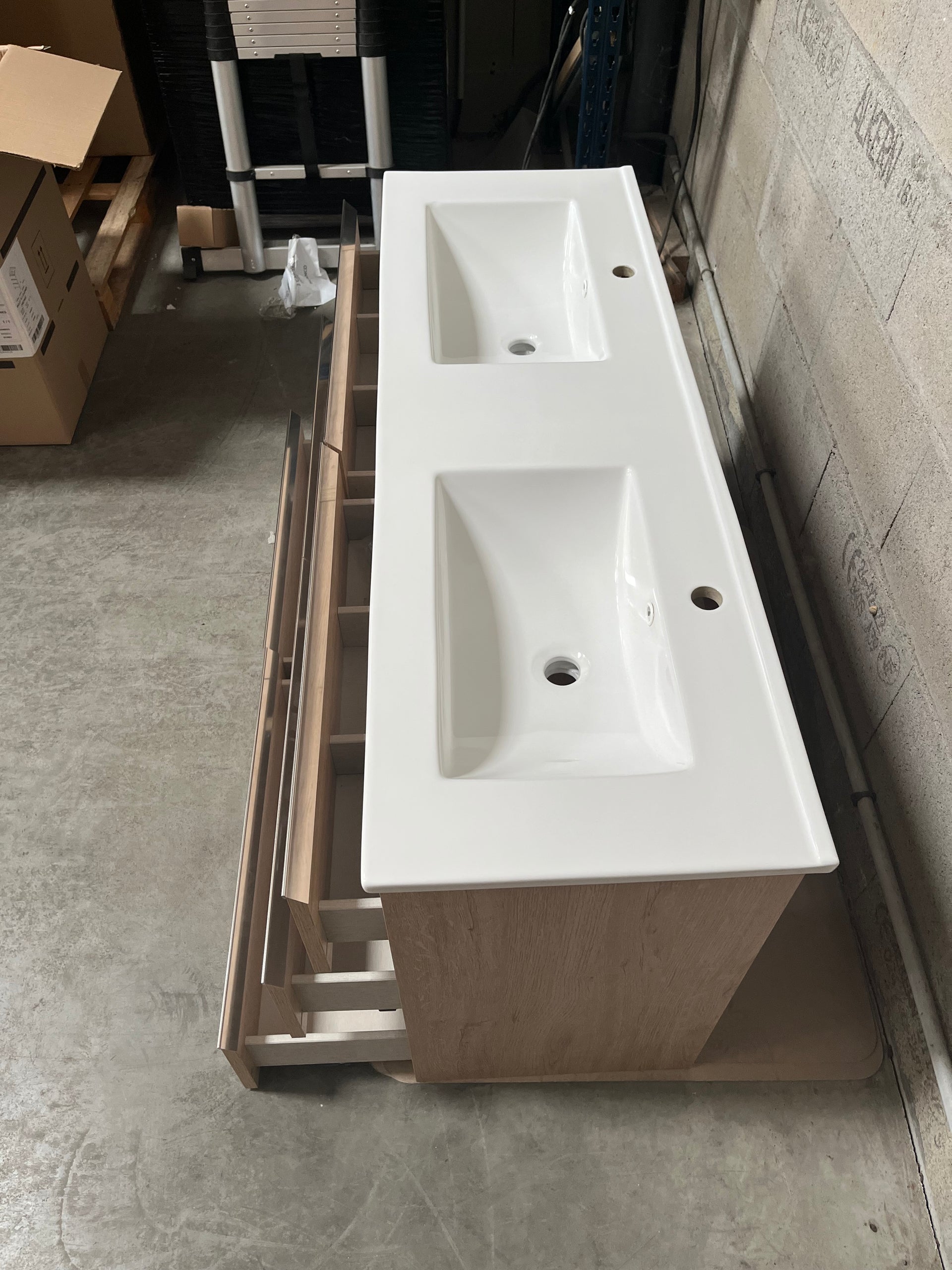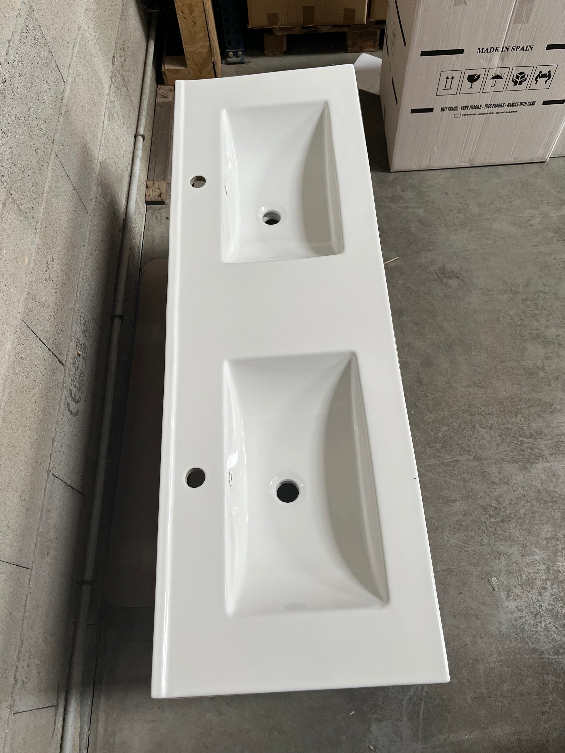 Aménagez votre de salle de bain avec ce plan double vasque en céramique 120 cm. Ce plan double vasque blanc, au design épuré, combine esthétique minimaliste et praticité, pour un rendu à la fois moderne et fonctionnel. 2 vasques pour plus de praticité !